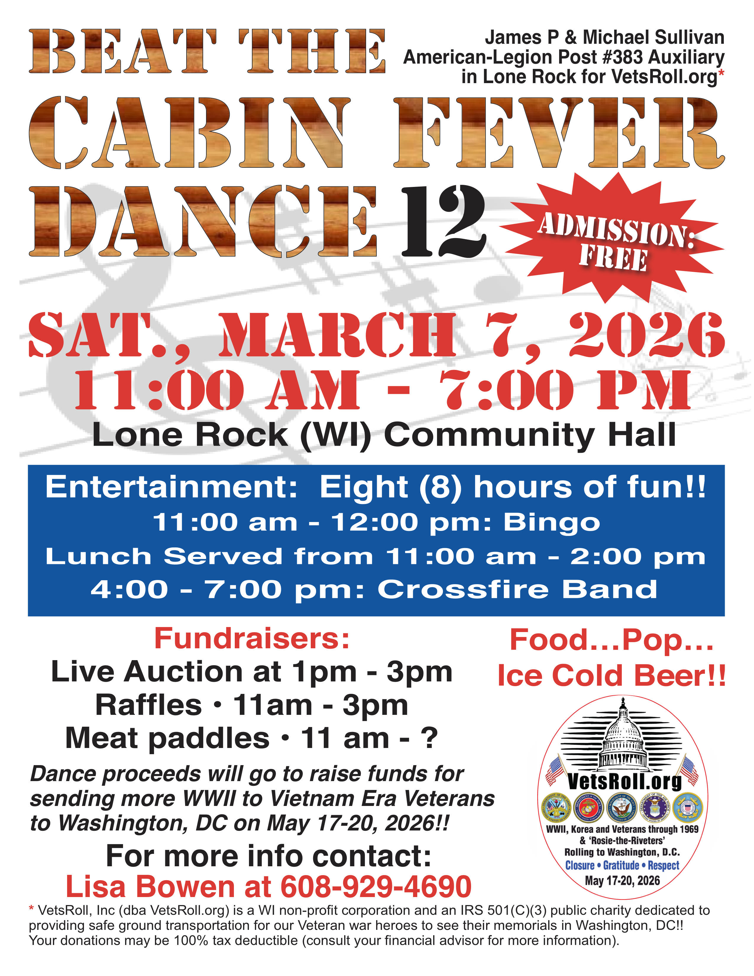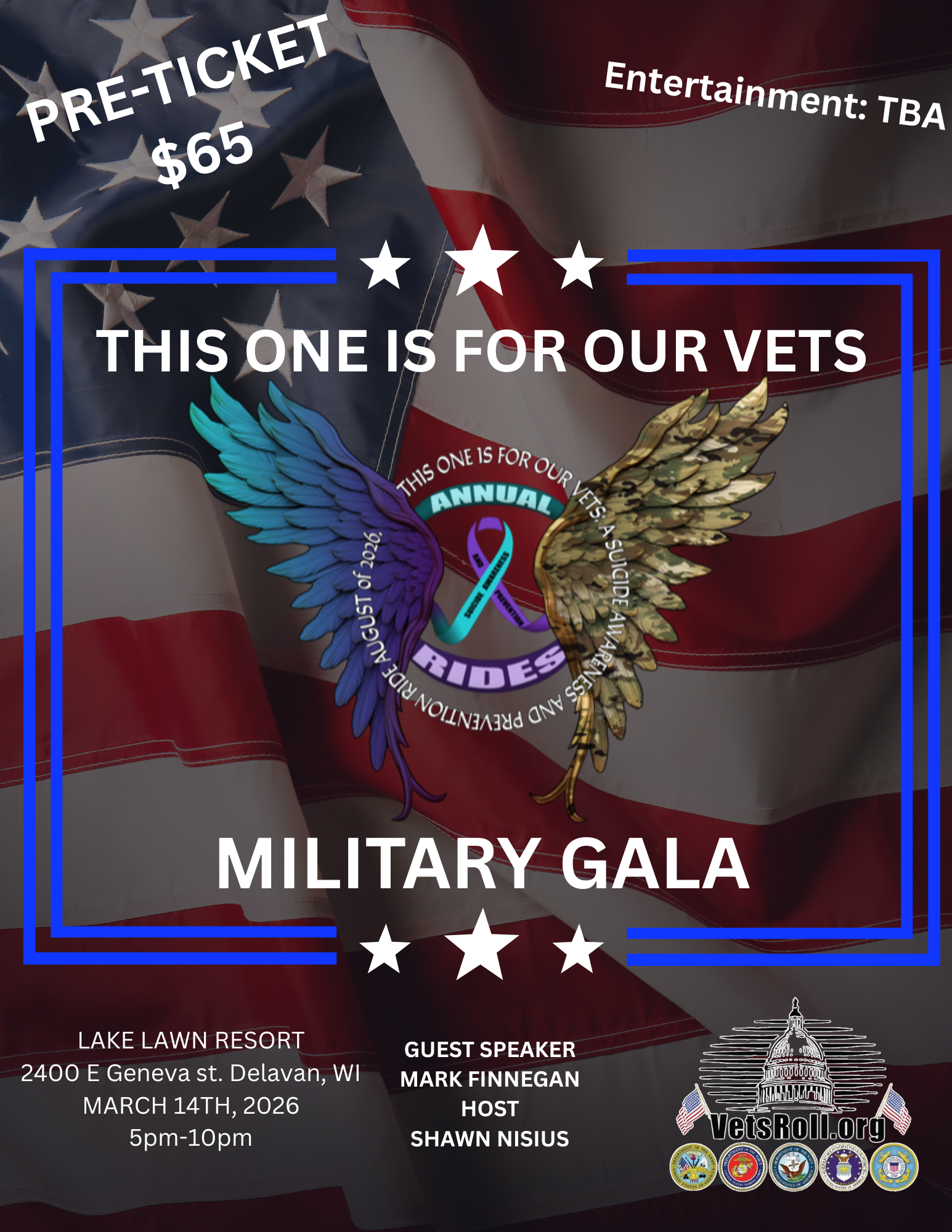Proceeds: 100% of the net proceeds support VetsRoll, Inc.